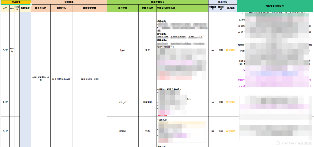 2)功能PM与数据产品经理(后称数据PM)做内部评审,评审目标是针对功能点梳理出与总埋点文档保持兼容、同时又可以拎出来后给到开发看的埋点清单;