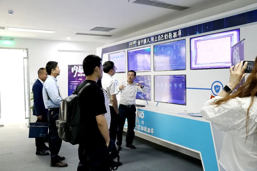 领导一行参观了总部办公环境,观看公司研发的数据库管理系统、数据安全等产品的大屏演示。