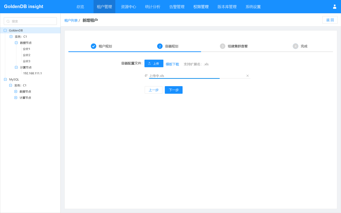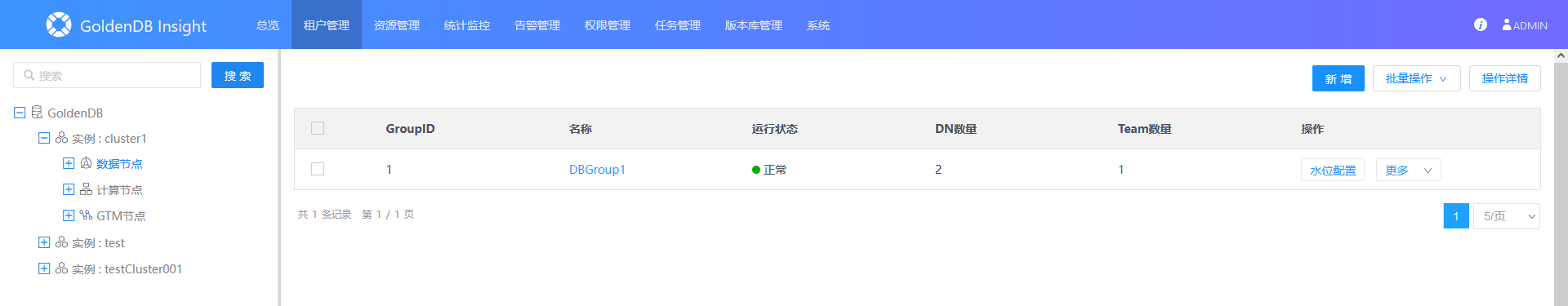 1.选择菜单[租户管理→GoldenDB],进入租户列表界面。