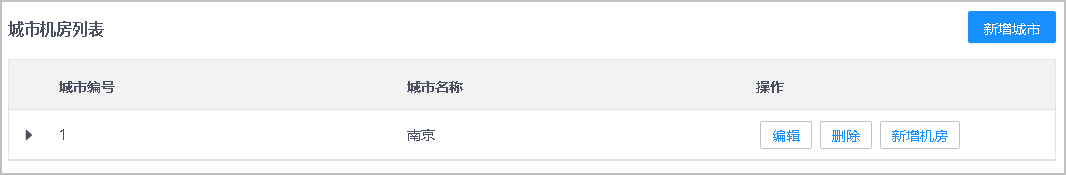 首次新增机房,需要先增加城市;如果城市已存在,增加城市操作可跳过。