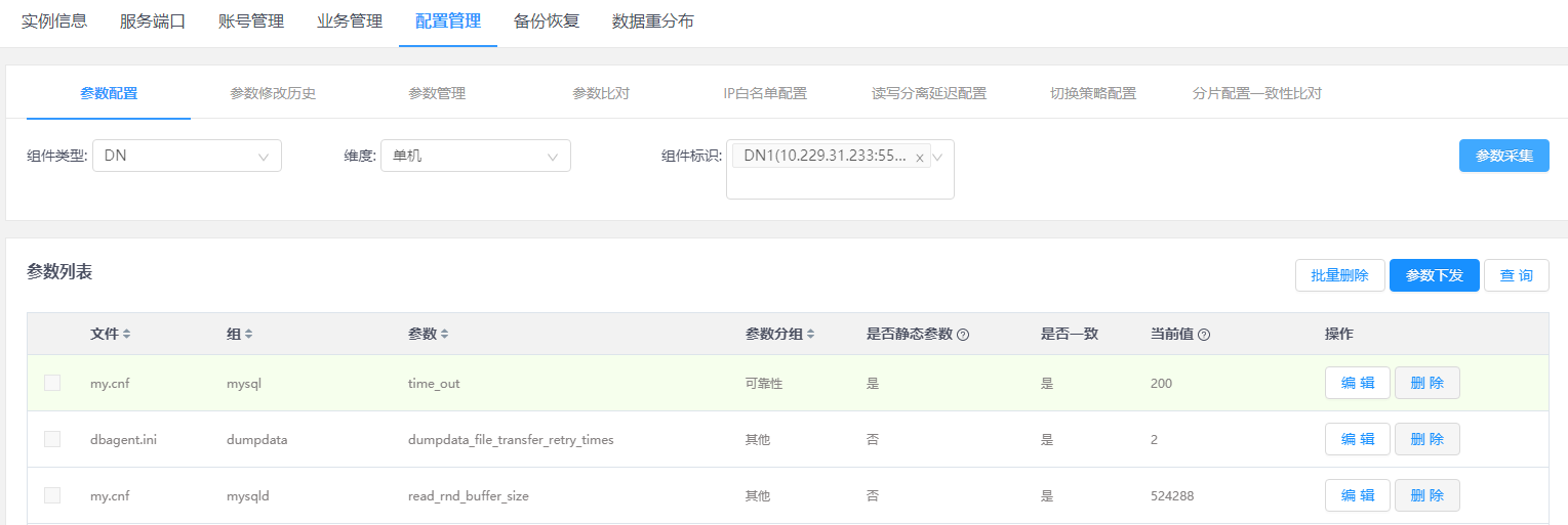 3.单击待查看数据节点分片下的DN,进入DN信息查看界面。