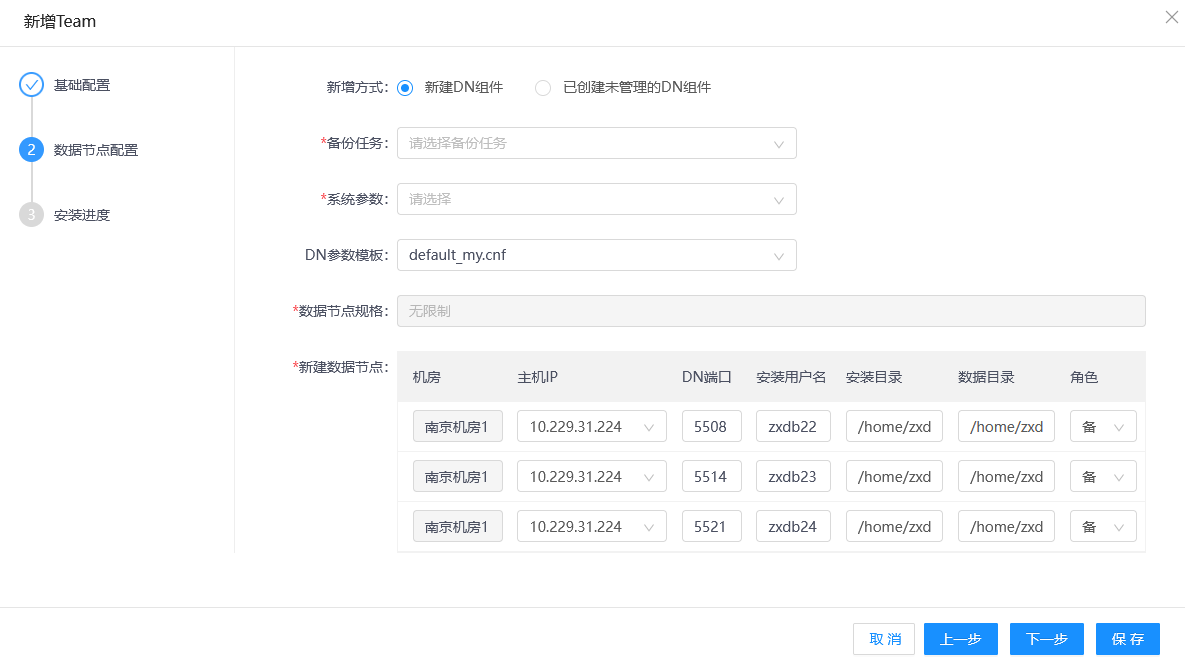 5.下拉菜单选择计算节点规格(计算节点规格默认为无限制),规划计算节点(可以选择该机房下不同的主机),单击下一步按钮,进入数据节点配置界面。