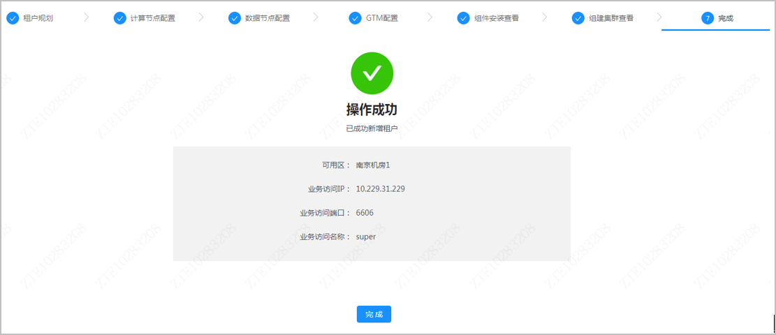 单击返回按钮,可退出当前页面;在租户列表该租户对应行单击查看详情按钮,可再次进入该页面。