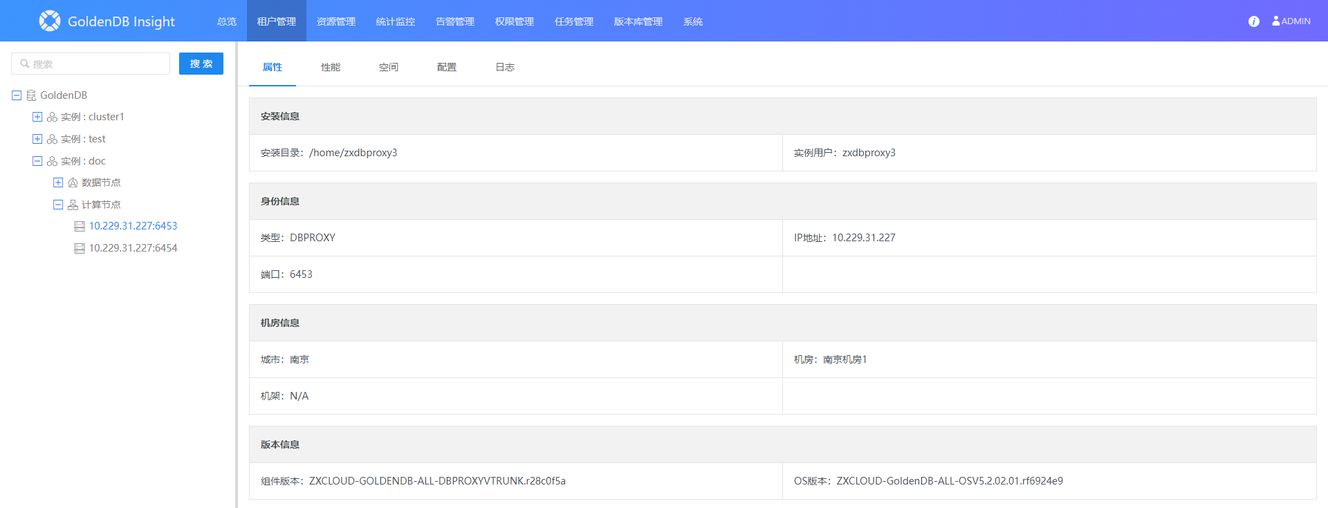 2.在左侧实例树中,展开租户实例下的计算节点。
