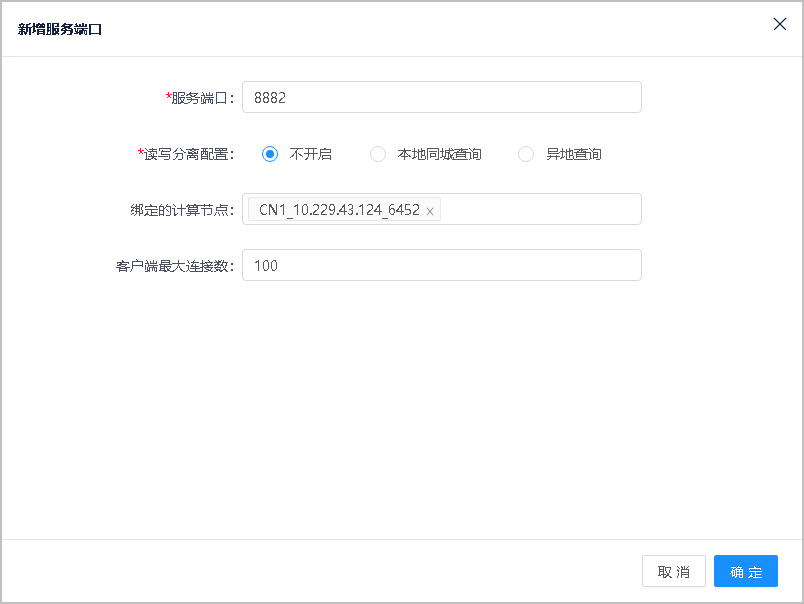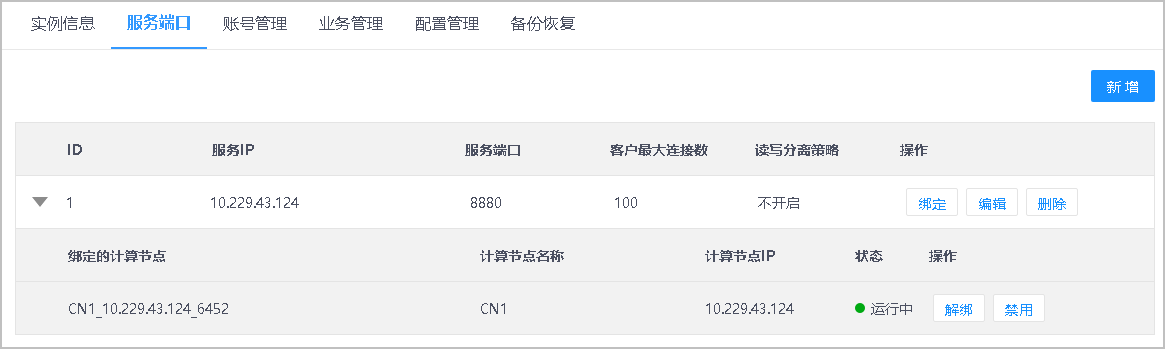如果是未绑定的CN,选择[租户管理-对应实例]进入服务端口页面,在对应行点击绑定,选择目标CN后确认,自动会启用。