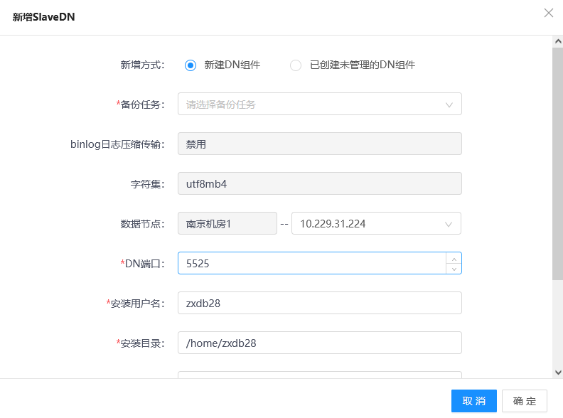 6.数据节点配置界面可配置binlog日志压缩传输方式,启用日志压缩后 ,binlog可压缩传输到备机,节省带宽。参数说明参见下表。