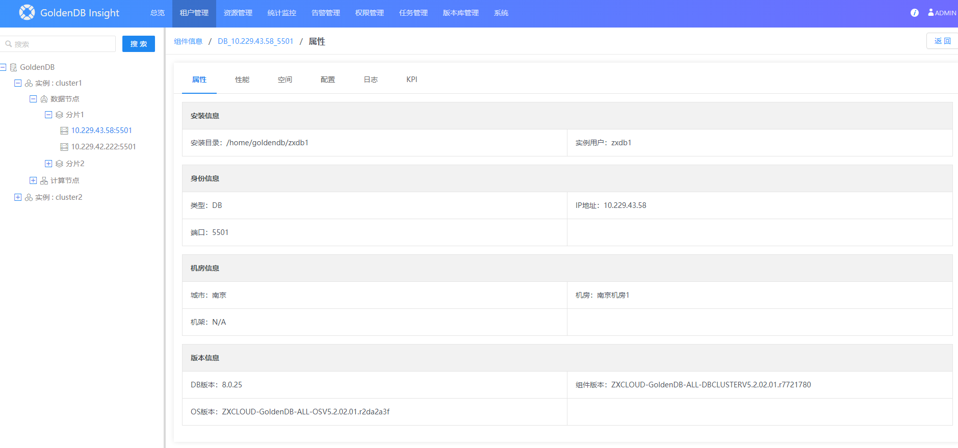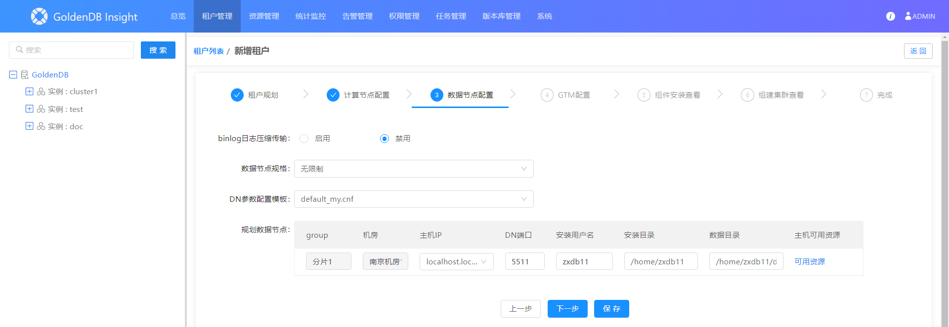 2.在左侧实例树中,展开租户实例下的数据节点。