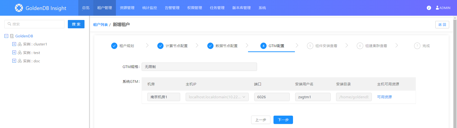 2.在左侧实例树中,展开租户实例下的GTM节点。