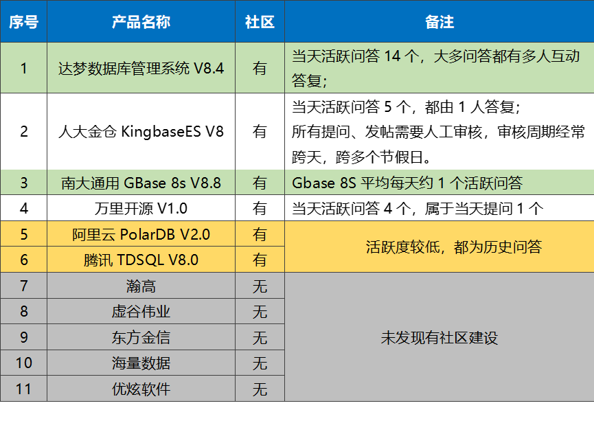以此视角,观察已经今日名录的单机数据库企业对问答社区的建设和活跃情况: