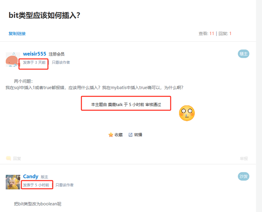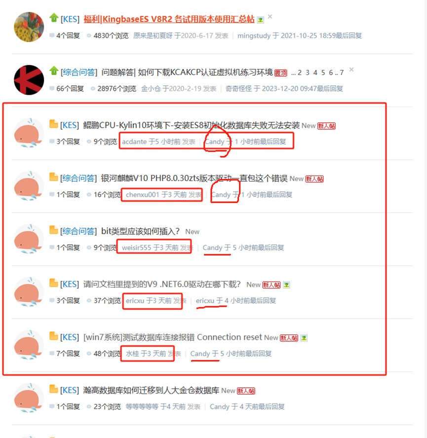 另外,金仓的社区也很有特色,所有问题都要经过人工审核以后才能发布。例如这篇“bit类型应该如何插入?”问题是3天前提问的,但是直到5小时前才由“麋鹿talk”审核通过,然后Candy进行了答复。并且几乎所有的问题都是由“麋鹿talk”审核, Candy答复,看起来社区支持力量缺失且答复时间较延后。