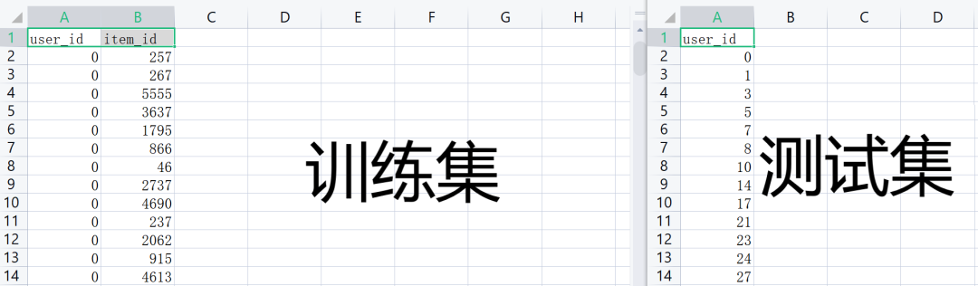 测试集中只有用户的id,在预测时,我们需要预测测试集中出现的每个用户可能会阅读的10本图书,将其推荐给用户。