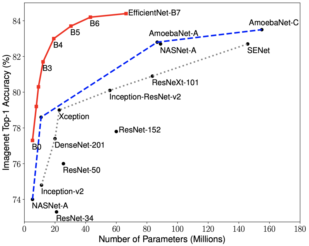 这里,我选择了EfficientNet B6作为骨干网络,理由见下图: