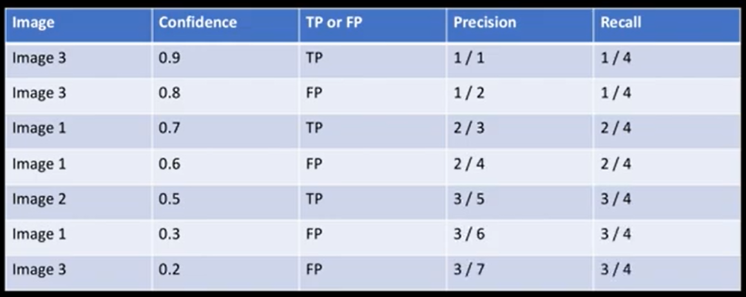 而和是动态变化的,这一点可以通过类比来理解。在普通的分类任务中,通过设置不同的阈值,可以获取多个不同的分类结果,这些分类结果对应不同的混淆矩阵,据此可以获得多个不同的(Recall, Precision),它们构成了P-R曲线上的一个个点。而在目标检测任务中,置信度充当了上述阈值的角色,不同的置信度下,可获取不同的(Recall,Precision),于是就可以绘制P-R曲线,进一步计算AP(P-R曲线下方面积)了。