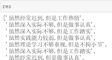 现在要做的就是生成评价内容。按照之前所说,需要准备两个列表,一个存储"虽然"后面的句子,另一个存储"但是"后面的句子: