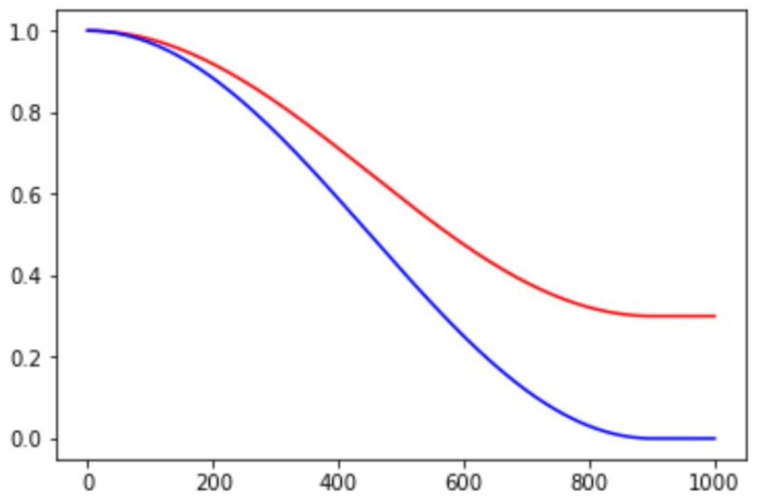 线性余弦衰减方式是基于余弦方式的衰减策略,其数学公式为: