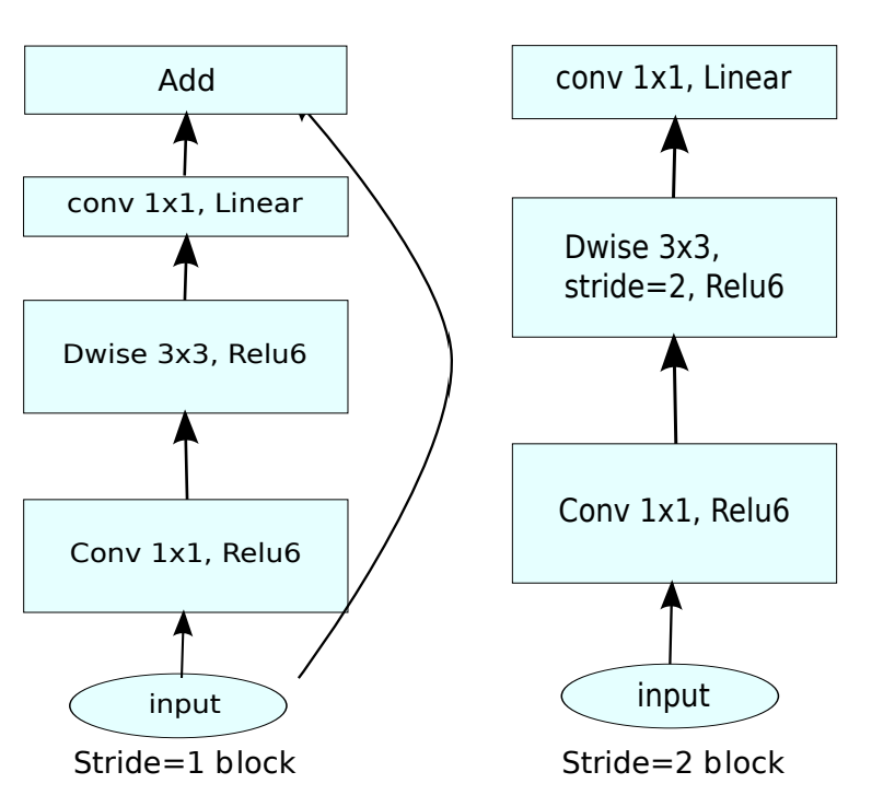 融合我们上面所讲的 Linear Bottlenecks以及Inverted residuals,就得到了MobileNet V2中的bottleneck,其具体结构如下: