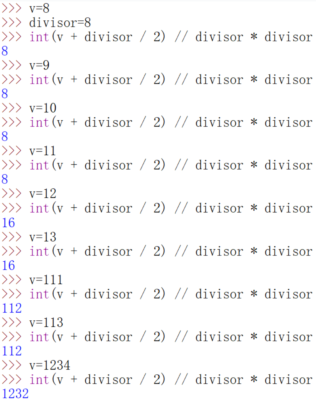 new_v = max(min_value, int(v + divisor / 2) // divisor * divisor)