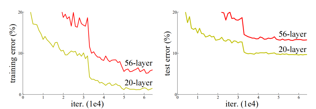一般来说,网络越深越复杂,同时网络提取特征的能力也就越强。但是,实验发现,当继续增加网络层数,使得网络越来越深时,网络能力不增反减。