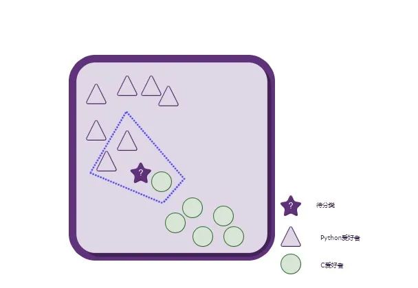 按照少数服从多数的原则,将这个新来的人(五角星)归类到三角形(Python爱好者)类别就搞定啦!