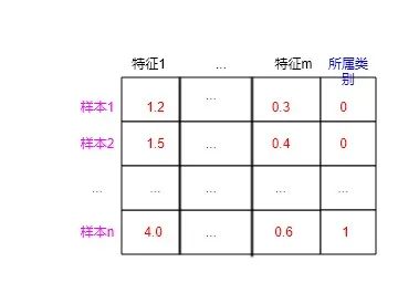 k-近邻算法是一种有监督的机器学习算法,对于有监督的机器学习算法来说,其训练数据集的一般格式如下(0:类别1;1:类别2):