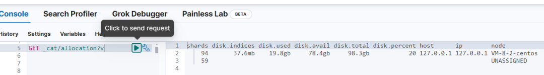 GET _cat/allocation 执行结果参考: