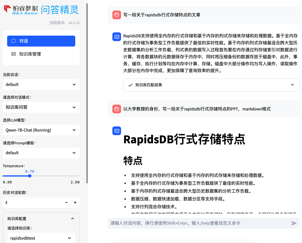 本次推出的大模型知识库一体机,凭借柏睿数据在AI+Data领域的深厚积累和技术沉淀,聚合市场尖刀产品向量数据库Rapids VectorDB和先进的通用大模型、可靠的算力设施,结合企业自有知识资产实现知识自动化分类、标注和推荐,为企业提供高效、智能、安全的一站式知识库解决方案,让知识成为企业的核心竞争力,让AI成为企业的最佳伙伴。