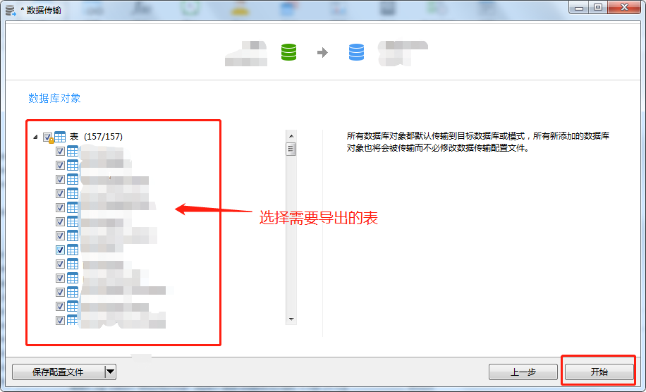 3、选择需要导出的表