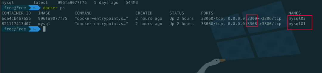 docker run --restart=always --privileged=true -d -v Users/free/code/log/mysqlDockerData/data:/var/lib/mysql -v Users/free/code/log/mysqlDockerData/conf:/etc/mysql/conf.d -v Users/free/code/log/mysqlDockerData/myconf/my.cnf:/etc/mysql/my.cnf -p 3308:3306 --name mysql01 -e MYSQL_ROOT_PASSWORD=1234 mysql
