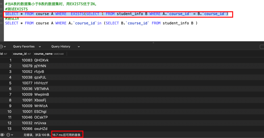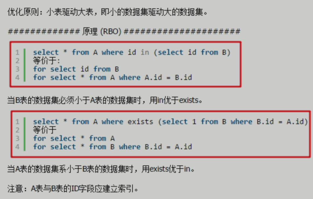 #当A表的数据集小于B表的数据集时,用EXISTS优于IN。