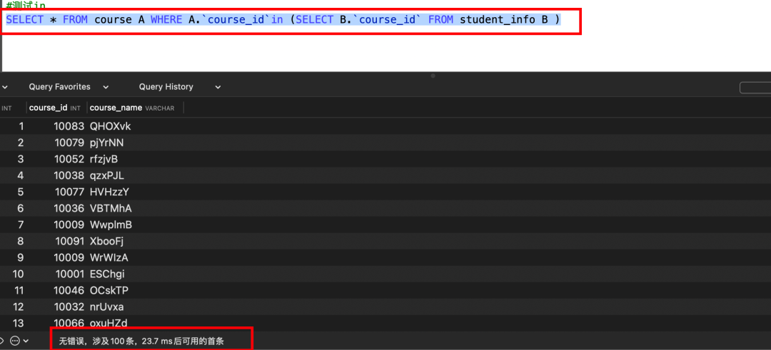 SELECT * FROM student_info A WHERE EXISTS (SELECT 1 FROM course B WHERE B.`course_id` = A.`course_id`)