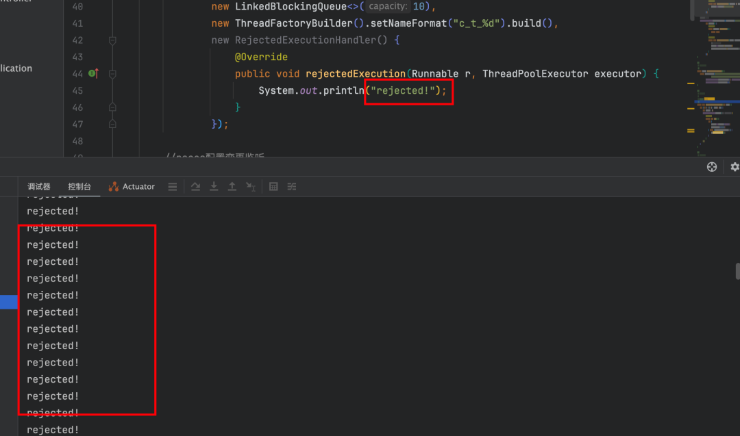 threadPoolExecutor = new ThreadPoolExecutor(Integer.parseInt(coreSize), Integer.parseInt(maxSize), 10L, TimeUnit.SECONDS,