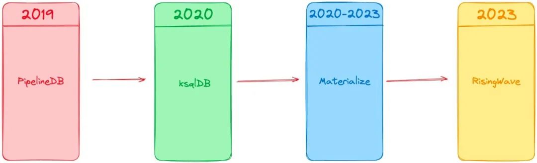 PipelineDB -> ksqlDB -> Materialize -> RisingWave