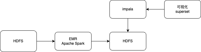 数据首先存储在 HDFS 等分布式文件系统中。 然后,数据通过 Apache Spark 等数据处理引擎,进行处理和计算。这些引擎用于执行各种数据转换、清洗和计算任务,以准备数据用于进一步分析和报告。 处理后的数据被写回到 HDFS 上,用于持久存储和查询。 使用 Superset 等可视化工具定义查询指标并创建仪表板和报告,通过 Impala 插件通过 Impala 来计算查询存储在 HDFS 中的数据,并在仪表板和报告中展示,以便分析数据和监控关键性能指标。