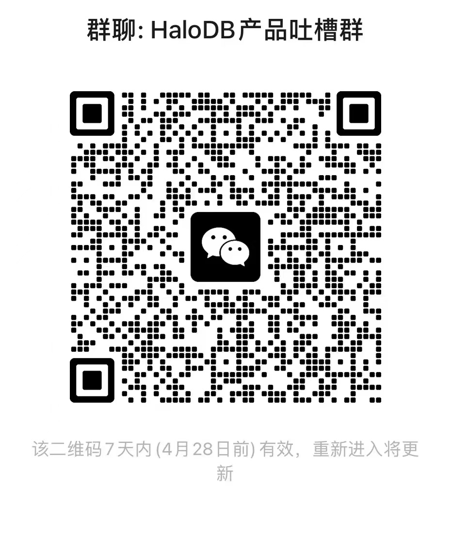 如果有对我们的产品感兴趣的朋友可以通过主页的联系方式与我取得联系,获取license来安装体验,目前已经开通HaloDB吐槽群,欢迎来喷。
