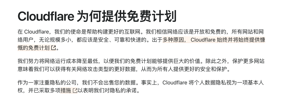 创始人的情怀与愿景其实挺重要的 …… ,Cloudflare 早期的许多服务一直都是免费提供的,第一个付费服务其实是 SSL 证书,现在也不要钱了。总的来说,就是靠企业级客户为安全付费。