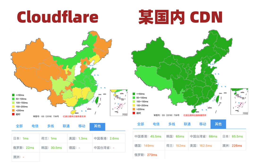 如果你的主要用户群体都是国内,又比较在乎速度,可以考虑一下 Cloudflare 企业版,或者是本土 CDN 厂商。我们和 <Redacted>云有合作,企业级客户在国内也可以使用他们提供的这些节点。