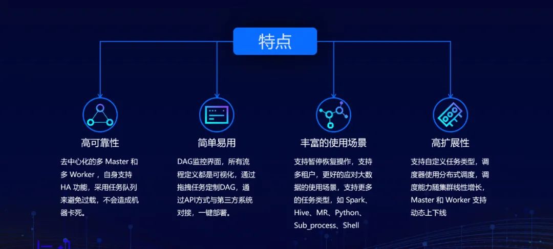 DolphinScheduler 主要是解决了数据同步任务需要人员编码的问题,让不会编码的人员也能够快速进行任务配置,提高开发人员及业务人员的工作效率,同时由于自定义简单相较于简单,很容易对 DolphinScheduler 高度定制化,不需要重复造轮子。
