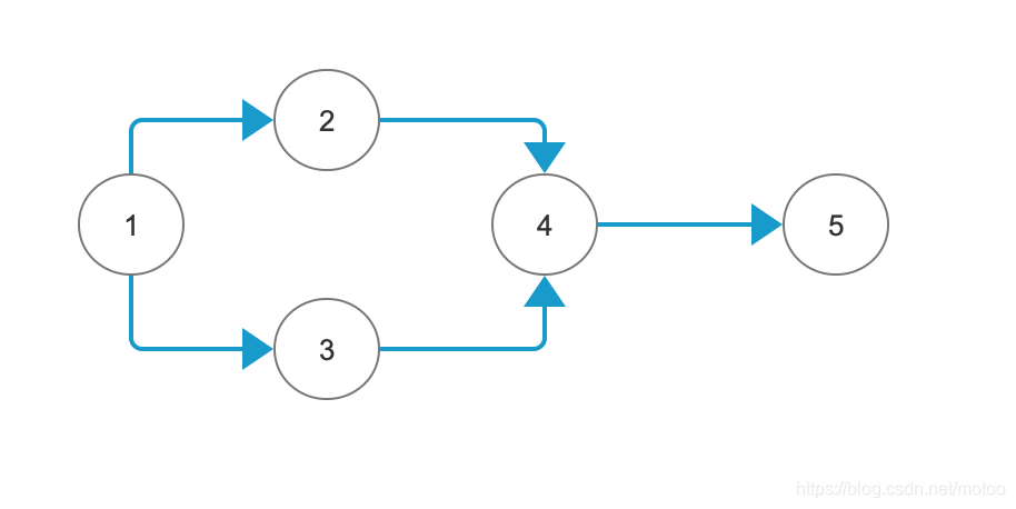 数据调度系统中,多个任务之间的依赖关系,用图可以表示,如下图所示,每个顶点表示一个任务,箭头方向表示任务的执行顺序。任何顶点都无法经过边回到该顶点,则该图就是无环图,即为有向无环图(DAG图)。