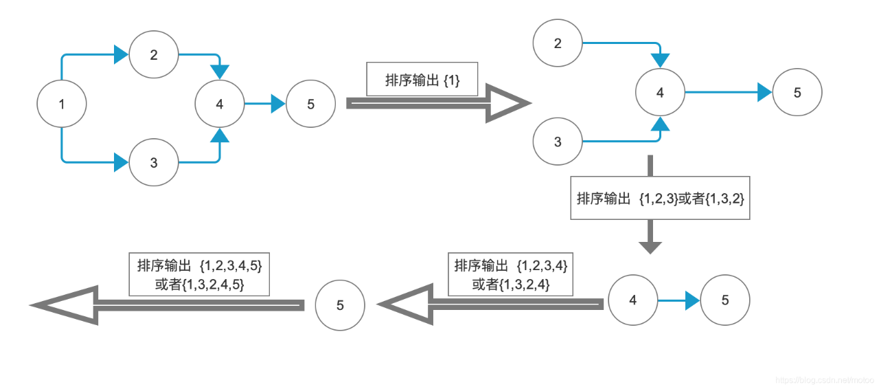 拓扑排序流程如下: