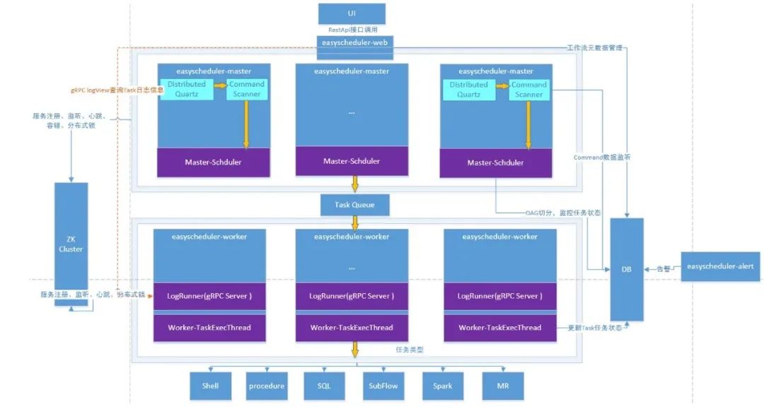 dolphinscheduler-ui 前端页面模块 dolphinscheduler-server 核心模块。包括master/worker等功能 dolphinscheduler-common 公共模块。公共方法或类 dolphinscheduler-api Restful接口。前后端交互层,与master/worker交互等功能 dolphinscheduler-dao 数据操作层。实体定义、数据存储 dolphinscheduler-alert 预警模块。与预警相关的方法、功能 dolphinscheduler-rpc 日志查看。提供日志实时查看rpc功能 dolphinscheduler-dist 与编译、分发相关的模块。没有具体逻辑功能