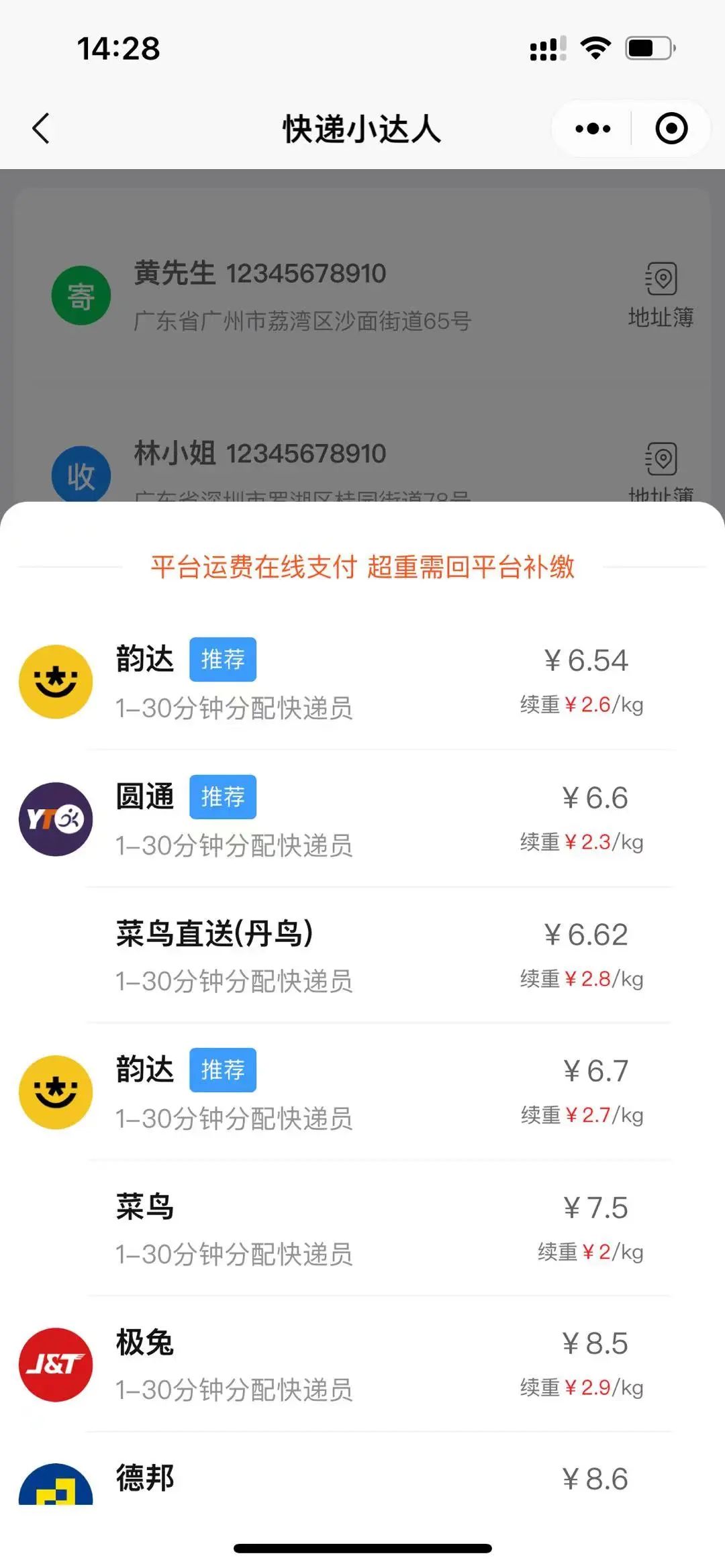 市面上90%的快递物流公司都有合作!目前可以寄(圆通/中通/申通/韵达/顺风/京东/德邦/极兔/百世/邮政/菜鸟裹裹/跨越速运)等!