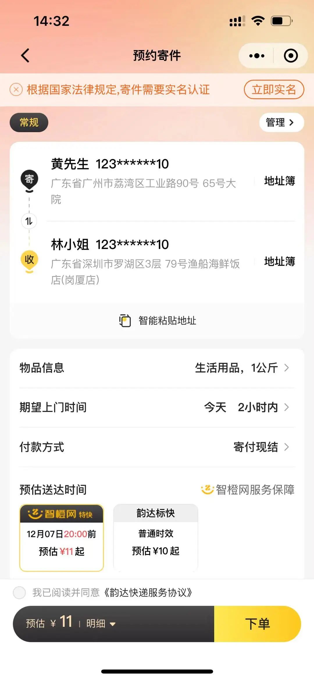 比如,我1kg的普货,地址填广东广州到广东深圳