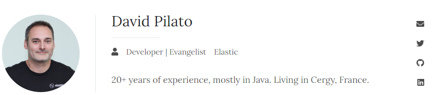 其作者 David Pilato,有20年+工作经验。自 2013 年至今,一直在 Elastic公司工作,可以算作 Elastic 元老级员工。