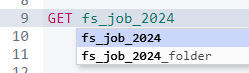 其二,索引名:fs_job_2024_folder 是基于咱们定义的 name 自动生成和创建的。