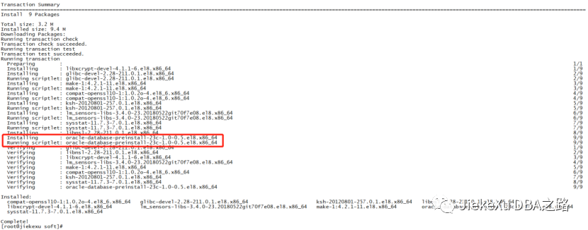 执行完 preinstall rpm包,相关 rpm 已经安装上了,并且也创建好了 Oracle 用户和相关组,关闭了透明大页和 numa,并且修改了所需要的内核参数。