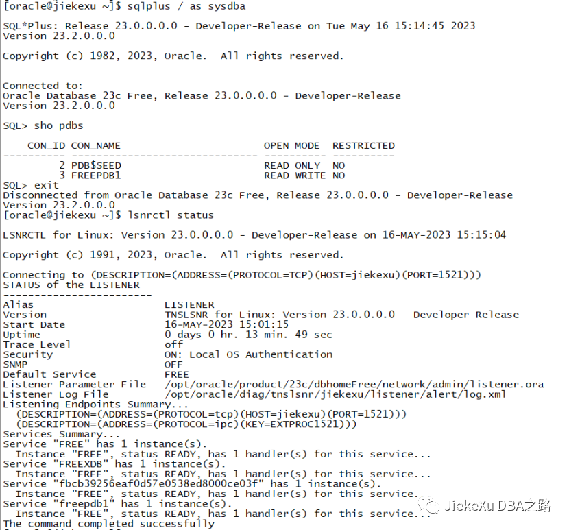 [root@jiekexu soft]# /etc/init.d/oracle-free-23c configure