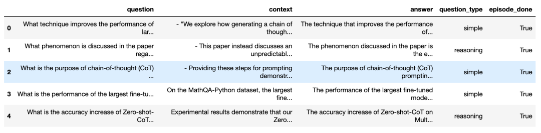 可以看到,上图生成了许多 query questions 和对应的 answers,包含对应的 context 出处。为保证生成问题的多样性,还可以选择各种各样的question_type