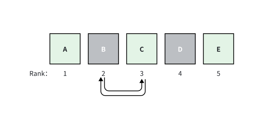 如果 B 和 C 文档调换了位置,那么考虑排名的指标得分就会发生变化,而不考虑排名的指标的得分则不会发生变化。
