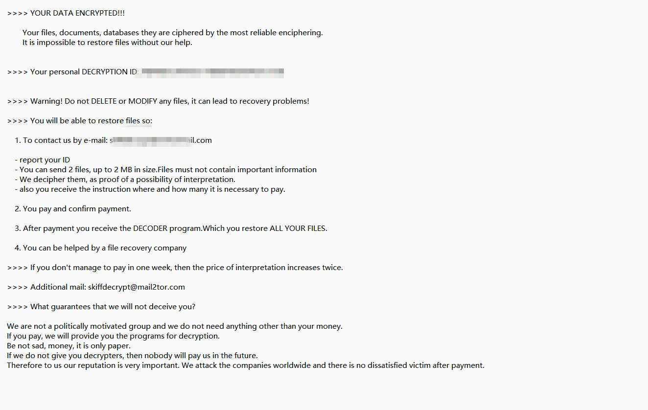 1. 不支付赎金,因为支付赎金只会增加对方的勒索金额,而且不能保证文件能够被解密。