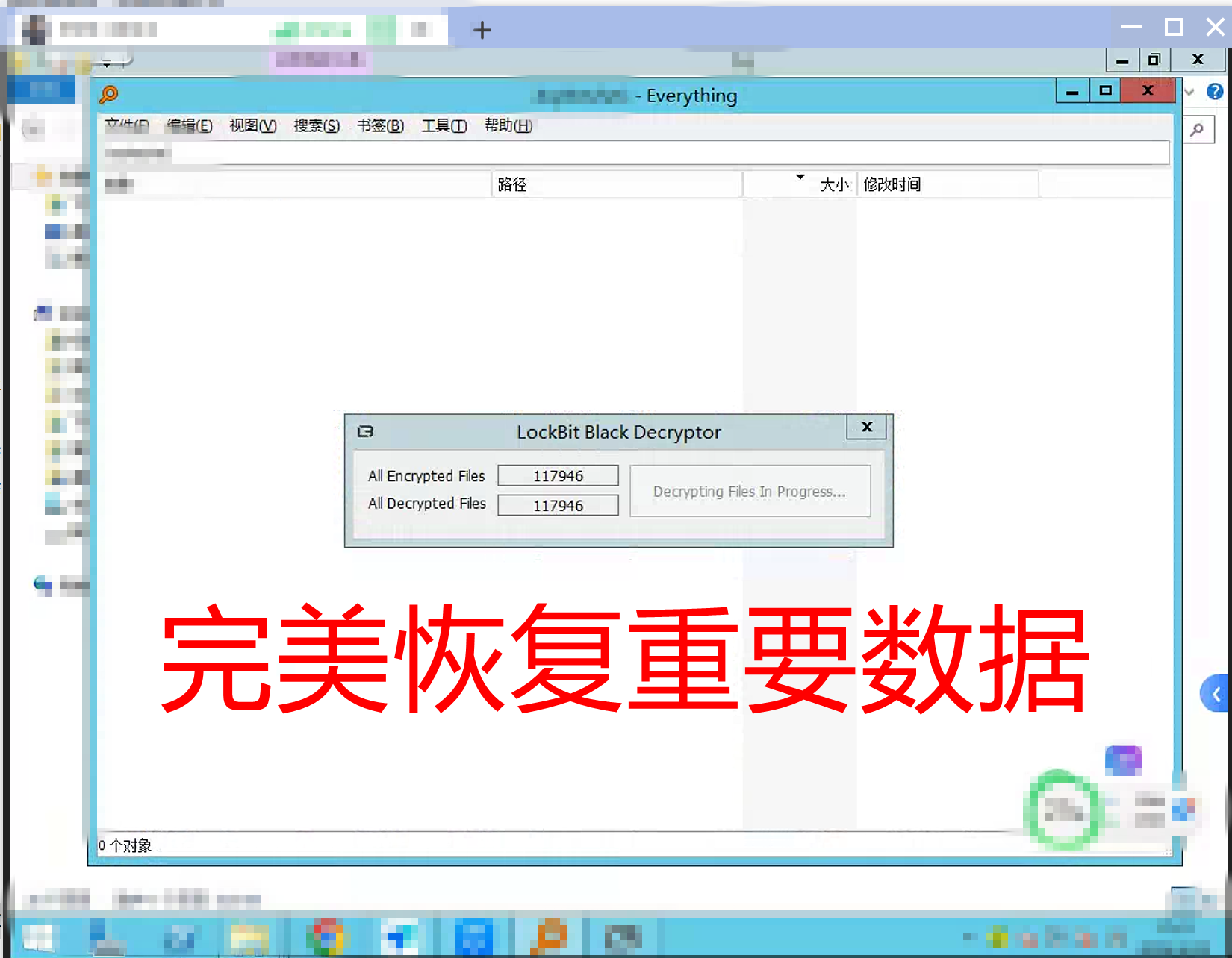 恢复被LockBit 3.0加密的数据资料是一个复杂且需要谨慎处理的过程。以下是一系列步骤,可能有助于恢复被加密的数据: